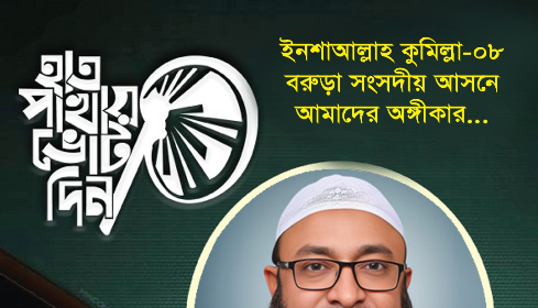 ইসলামী আন্দোলন বাংলাদেশ মনোনীত কুমিল্লা ৮ বরুড়া আসনের হাতপাখা প্রতীকের প্রার্থী মুফতী সাদিক মাহমুদ বিন নুরীর নির্বাচনী অঙ্গীকারনামাঃ ১। বরুড়া উপজেলার সকল যুবকদের বিভিন্ন প্রশিক্ষণের মাধ্যমে দেশে বিদেশে কর্মসংস্থানের ব্যবস্থা করা হবে, একজন যুবকও বেকার…