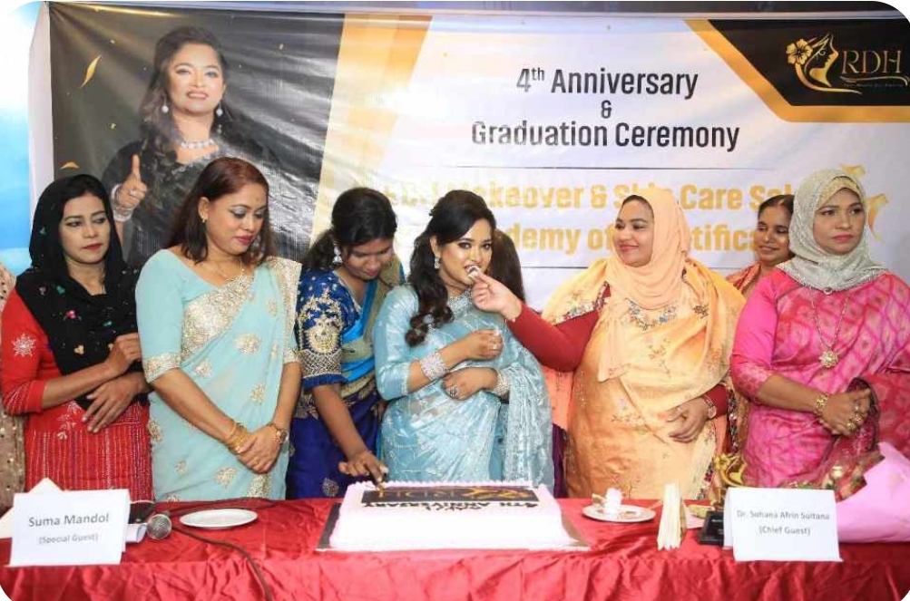 আর’ডি’এইচ মেকওভার এন্ড স্কিন কেয়ার সেলুন এবং আর ডি এইচ একাডেমি অফ বিউটিফিকেশন এর ৪র্থ বর্ষপূর্তি এবং বিউটিফিকেশন কোর্স শেষে স্টুডেন্টদের সার্টিফিকেট গত ৩ নভেম্বর ২০২৪ রবিবার প্রদান করা হয়। অনুষ্ঠানে প্রধান অতিথি হিসেবে উপস্থিত ছিলেন ডা. সোহানা আফরিন সুলতানা, চিফ কন্সালেন্ট, টিয়ারা লেজার এন্ড এস্থেটিক সেন্টার।