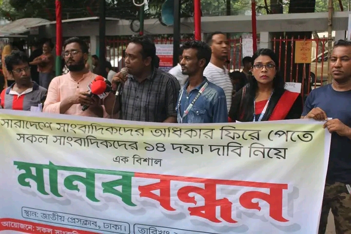সাংবাদিকদের মানববন্ধন ও রাষ্ট্রপতি বরাবর স্মারক লিপি পেশ