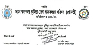 ঢাকা কলেজস্থ কুমিল্লা জেলা ছাত্র কল্যাণ পরিষদ (গোমতী)-এর ১৬৩ সদস্যের নতুন কমিটি ঘোষণা করা হয়েছে। বৃহস্পতিবার (২৮ নভেম্বর) বিকেল ৪টায় ঢাকা কলেজের বিজয় চত্বরে সংশ্লিষ্টদের উপস্থিতিতে এক সভার মাধ্যমে এই কমিটি ঘোষণা করা হয়। এক বছরের জন্য অনুমোদিত এই কমিটির সভাপতি নির্বাচিত হয়েছেন ওবায়দুর রহমান শিবলী এবং সাধারণ সম্পাদক হিসেবে দায়িত্ব পেয়েছেন মো. আতাউল্লাহ আতাউর। নবগঠিত কমিটির অন্যান্য গুরুত্বপূর্ণ পদে রয়েছেন: সিনিয়র সহ-সভাপতি: এনামুল হাসান জয়, সিনিয়র যুগ্ম সাধারণ সম্পাদক: ফাহিম মুনতাছির, যুগ্ম সাধারণ সম্পাদক: নাহিন হাসান, সাংগঠনিক সম্পাদক: রাফসান জিসান, দপ্তর সম্পাদক: সুলেমান সরকার, প্রচার ও প্রকাশনা সম্পাদক: মো. মুমিনুল ইসলাম, যোগাযোগ বিষয়ক সম্পাদক: সৈয়দ আব্দুল্লাহ আল ফাহাদ।