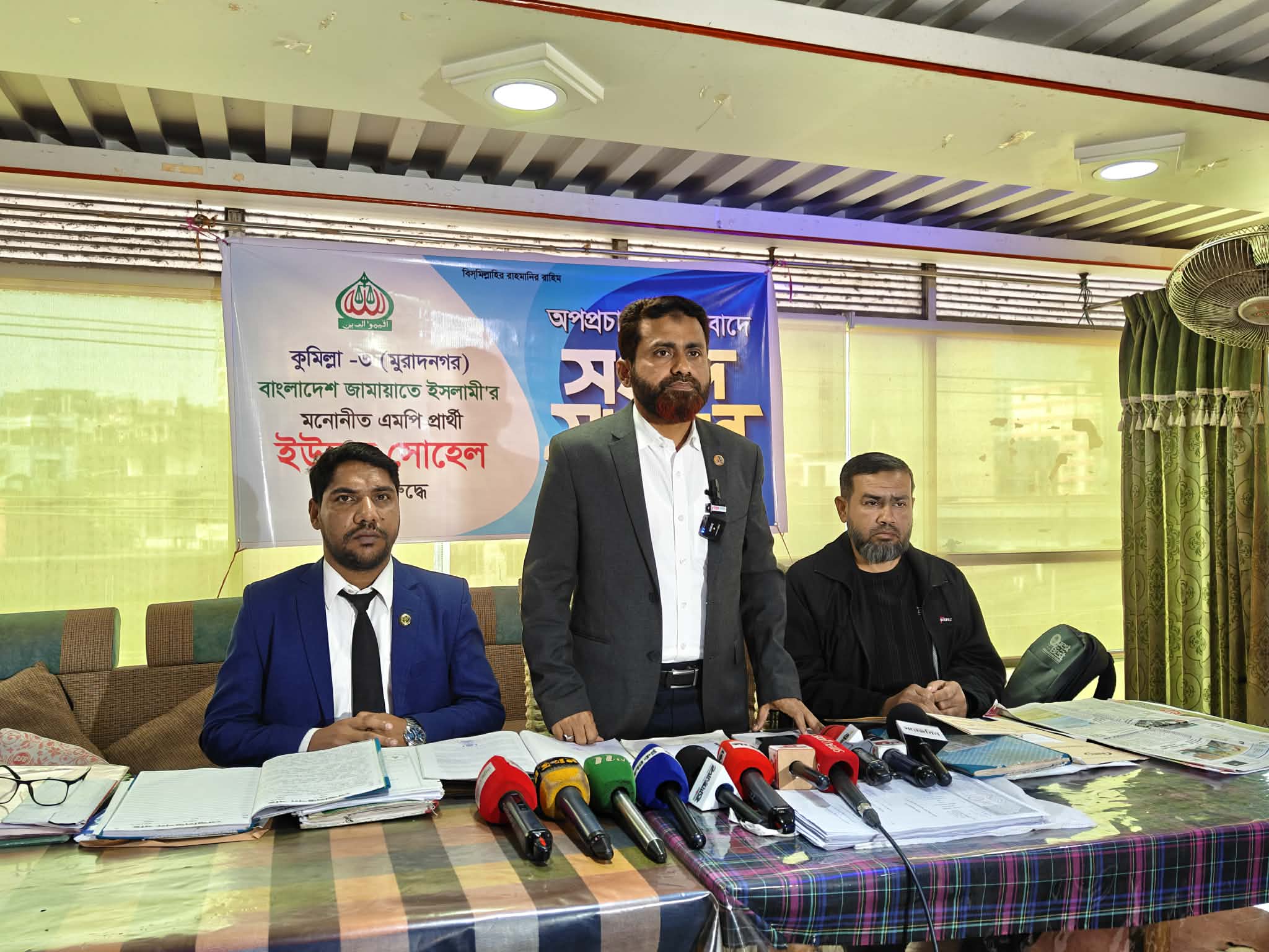 জামায়াত প্রার্থী ইউছুফ সোহেল সংবাদ সম্মেলনে আরো বলেন, একটি কুচক্রী মহল আমার ভোটের মাঠের জনপ্রিয়তা, সম্মান ক্ষুন্ন করার উদ্দেশ্য নিয়ে এ ধরনের মিথ্যা গুজব সামাজিক যোগাযোগ মাধ্যমে ছড়াচ্ছে। মিথ্যাচার ফেসবুক সংবাদ পরিবেশন থেকে সকলকে বিরত থাকার আহ্বান জানান তিনি। উল্লেখ্য যে মুরাদনগর থানায় জামায়াতে ইসলামীর মনোনিত কুমিল্লা-৩ আসনের প্রার্থী ইউছুফ সোহেল মিথ্যা সংবাদ পরিবেশনকারীদের বিরুদ্ধে অভিযোগ দায়ের করবেন বলে সাংবাদিকদের জানান।